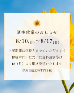 青 黄色 夏 ひまわり 夏季休業 お知らせ インスタグラム投稿