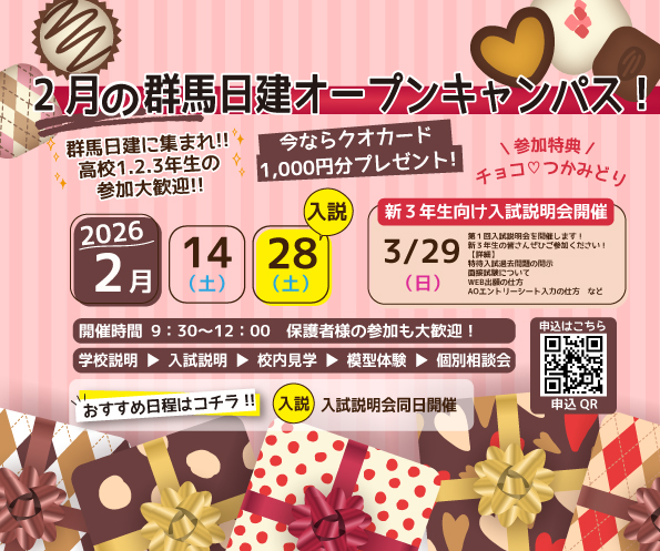 2月のオープンキャンパスはバレンタイン企画を開催します!